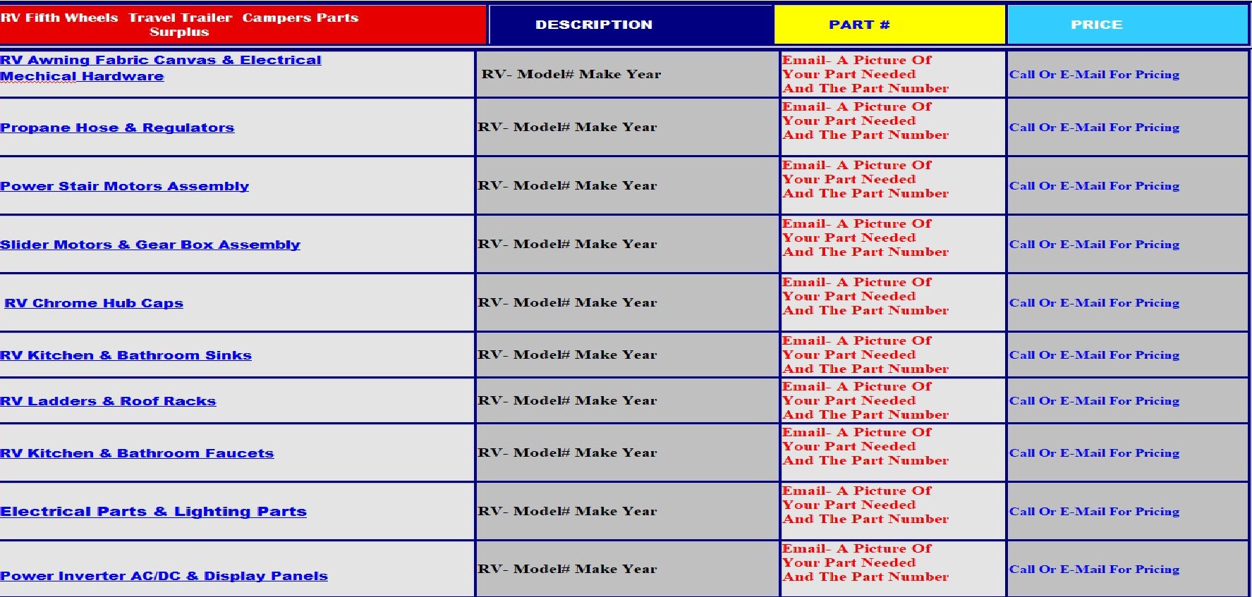 Superior online list of RV salvage yards complete with their contact info and location. Or, you can always search “RV Salvage parts” rv parts. Shop with confidence.: Shop by category. ... Mobile Home RV Parts Self Contained Outlet Includes Cover Plate White See more like this. rv parts accessories RV Part Shop USA is your one-stop destination for all your RV, trailer parts and , used rv parts for sale near meused rv partsused rv parts rv surplus and salvage used rv partscolaw rv salvageaccessories online. Get the best RV parts and RV supplies from a trusted and dedicated source Choose From! Huge Selection of Over 60 Top Selling Brands! Family Owned. Professional and Trusted. Service, Parts & Sales. 96% Customer Satisfaction. Diagnose, rv parts outlet,rv parts superstore,discount rv parts and surplus ,wholesale rv parts distributors,used camper partsrv parts and accessories near me,rv parts ,lbuquerque, NM - New Mexico   Anchorage, AK - Alaska   Ashburn, ME - Maine , RVS Fifth Wheels Travel Trailer Campers Parts Surplus RVS Fifth Wheels Travel Trailer Campers Parts Surplus RVS Fifth Wheels Travel Trailer Campers Parts Surplus RVS Fifth Wheels Travel Trailer Campers Parts Surplus RVS Fifth Wheels Travel Trailer Campers Parts Surplus RVS Fifth Wheels Travel Trailer Campers Parts Surplus RVS Fifth Wheels Travel Trailer Campers Parts Surplus RVS Fifth Wheels Travel Trailer Campers Parts Surplus RVS Fifth Wheels Travel Trailer Campers Parts Surplus RVS Fifth Wheels Travel Trailer Campers Parts Surplus RVS Fifth Wheels Travel Trailer Campers Parts Surplus RVS Fifth Wheels Travel Trailer Campers Parts Surplus RVS Fifth Wheels Travel Trailer Campers Parts Surplus RVS Fifth Wheels Travel Trailer Campers Parts Surplus RVS Fifth Wheels Travel Trailer Campers Parts Surplus RVS Fifth Wheels Travel Trailer Campers Parts Surplus RVS Fifth Wheels Travel Trailer Campers Parts Surplus RVS Fifth Wheels Travel Trailer Campers Parts Surplus   Atlanta, GA - Georgia   Amarillo, TX - Texas   Austin, Texas - Texas   Baltimore, MD - Maryland   Barrington, RI - Rhode Island   Birmingham, AL - Alabama   Boise, ID - Idaho   Boston,  MA - Massachusetts   Buffalo,  NY - New York   Charleston, SC - South Carolina   Cheyenne, WY - Wyoming   Chicago, IL - Illinois   Cincinnati ,OH - Ohio   Cleveland, Ohio - Ohio   Columbus, OH - Ohio   Dallas, TX - Texas   Denver, CO - Colorado   Des - District of Columbia   Wichita, KS - Kansas Superior online list of RV salvage yards complete with their contact info and location. Or, you can always search “RV Salvage parts” rv parts. 1 Water Hydro- Flushing Services Mission Viejo CA RV Black Gray Water Hydro- Flushing Services Monrovia CA RV Black Gray Water Hydro- Flushing Services Montclair CA RV Black Gray Water Hydro- Flushing Services Montebello CA RV Black Gray Water Hydro- Flushing Services Monterey Park CARV Black Gray Water Hydro- Flushing Services Montrose CA RV Golf Cart BatteRV Golf Cart Mobile On site Servicesry Installation Moorpark CA RV Black Gray Water Hydro- Flushing Services Moreno Valley CA RV Black Gray Water Hydro- Flushing Services Mount Baldy CA RV Black Gray Water Hydro- Flushing Services Mount Laguna CA RV Black Gray Water Hydro- Flushing Services Mount Wilson CA RV Black Gray Water Hydro- Flushing Services Mountain Center CA RV Black Gray Water Hydro- Flushing Services Mountain Center RV Black Gray Water Hydro- Flushing Services Mountain Pass CARV Black Gray Water Hydro- Flushing Services Murrieta CA RV Black Gray Water Hydro- Flushing Services National City CA RV Black Gray Water Hydro- Flushing Services Needles CA RV Black Gray Water Hydro- Flushing Services Newberry Springs CA RV Black Gray Water Hydro- Flushing Services Newbury Park CA RV Black Gray Water Hydro- Flushing Services Newhall CA RV Black Gray Water Hydro- Flushing Services Newport Beach CA RV Black Gray Water Hydro- Flushing Services Newport Coast CA RV Black Gray Water Hydro- Flushing Services Nipton CARV Black Gray Water Hydro- Flushing Services Norco CA RV Blence. Video Duration: Mobile RV Repair - Fast Reliable Service Mobile RV ..Superior Rv Repair RV Repair - Fast Reliable Service Mobile RV Service where you need it, when you need it! Mobile RV Repair. We come to you! Call us Today! 951-906-4854 When it comes to reliability, we are the one you need! Family owned and with highly trained, professional technicians. KNOW MORE MOBILE RV SERVICE REQUEST Please complete the form RV Service,rv, rv repair, trailer,rv mobile service, rv parts Specials. One Item Diagnostic - $84.99 & Up. Inspection Of 3 Appliances - $99.99 & Up. Top Quality Rubber or PVC Roof- $1999.99& up. Wheel Bearing Pack; (Tandem Axel) $249.99 (Parts Included). *Prices Vary on mileage driven and RV size. Service Call Charge may apply. Searches related to mobile rv repair san bernardino mobile rv repair san bernardino ca mobile rv repair oklahoma mobile rv repair in san diego mobile rv repair service near me mobile rv repair in north carolina mobile rv repair indiana mobile rv repair colorado mobile rv repair montana camperfaqs.com › mobile-rv-repair-in-riversideMobile RV Repair in Riverside, California (Top RV Repair ... Nov 1, 2022 · Mobile RV Services City: Riverside State: California Phone:Used RV Parts Online - your door! Young Farts RV Partsused-rv-parts Browse all our parts by clicking the Used RV Parts Section! Only RV Salvage Yard. Young Farts RV Parts. North America's Largest RV Part store! Over ... RV Parts and Salvage› Welcome to Colaw RV's We are the largest RV Salvage in the nation with a wide variety of used, surplus, new, obsolete and overstock parts. RV Parts For Sale in California RV rv-parts-for-sale RV Parts For Sale in California. If you want to learn more about any of our available parts and accessories for sale in California, check out what we ... RV Salvage Motorhomes - Parting Out Used RV Parts Repair ... Visone RV. RV Salvage Motorhomes - Parting 